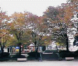 *広場はケヤキなどの落葉樹で囲まれている。 |