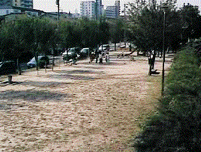 並木に囲まれた遊具広場