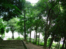 特徴など:池乃内公園の道路を挟んで北側に位置する。主に当緑地の奥に位置する住宅居住者の通行に利用されている。しかし、木漏れ日が射すように、敷地が広くないにも関わらず、自然を体感できるスペースでもある。(2003.6)