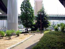 “Á’¥‚È‚ÇF‘å‚«‚ÈŠ²ü“¹˜H‚Ɉ͂܂êAŽOŠpŒ`‚Ì•~’n‚ðŽ‚ÂŒö‰€B‰~Œ`ƒXƒy[ƒX‚ÌŠX˜H“”‚ð’†S‚É“¹‚Ɨ΂ªL‚ª‚Á‚Ä‚¢‚éB(2002.6)